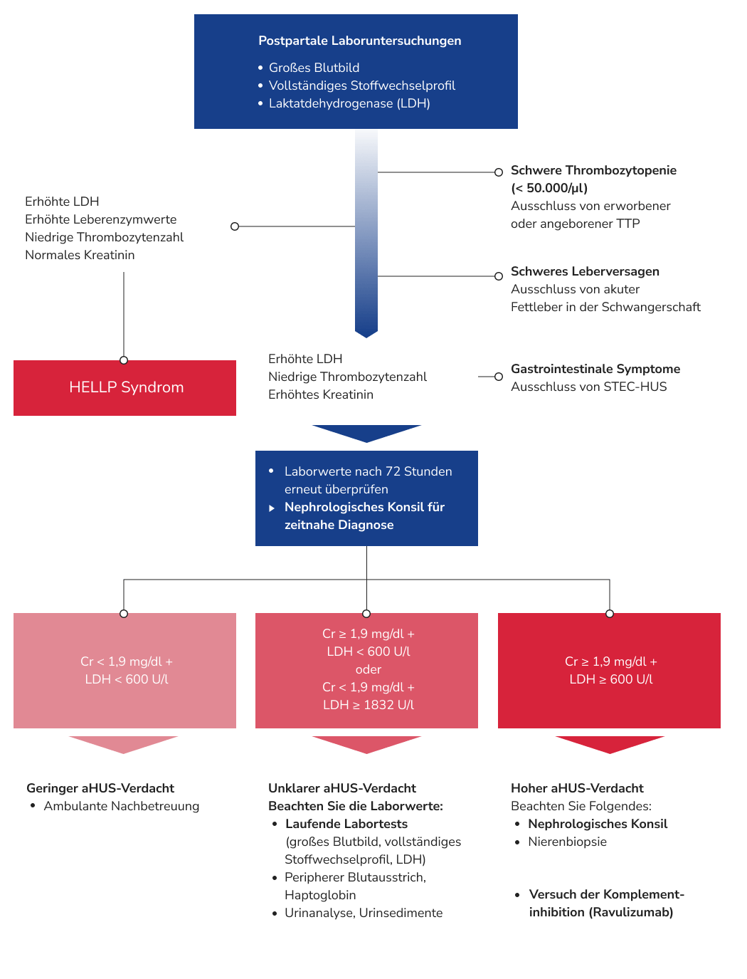 TMA-Patientinnen benötigen während der Schwangerschaft oder postpartal daher eine schnelle Differenzialdiagnose und eine frühzeitige, spezifische Therapie.ref_Laurence_J_2016ref_Walle_JV_2017