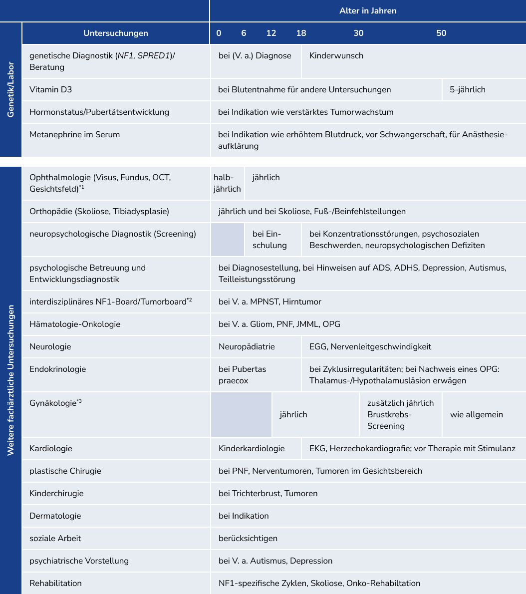 Da sich viele Manifestationen altersabhängig entwickeln, sind eine frühe Diagnosestellung und interdisziplinäre Betreuung mit relativ engmaschigen, an das Lebensalter angepassten Untersuchungsintervallen entscheidend.