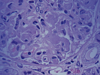Bei einer Biopsie werden kleine Gewebeteile aus dem Körper entnommen und im Labor z.B. unter dem Mirkoskop oder anderen Techniken auf Auffälligkeiten wie Amyloidfibrillen untersucht. |