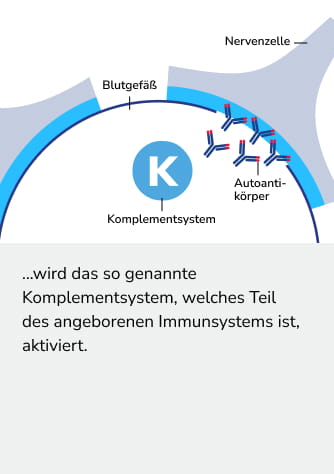 Durch die Entzündungen werden Nerven geschädigt. Das kann zu Beschwerden wie beispielsweise Taubheitsgefühlen, Schwäche in Armen oder Beinen, oder Sehbeeinträchtigungen führen.4 Bei einem kleinen Teil der Betroffenen können sich die Beschwerden nach einem Schub teilweise wieder bessern.5