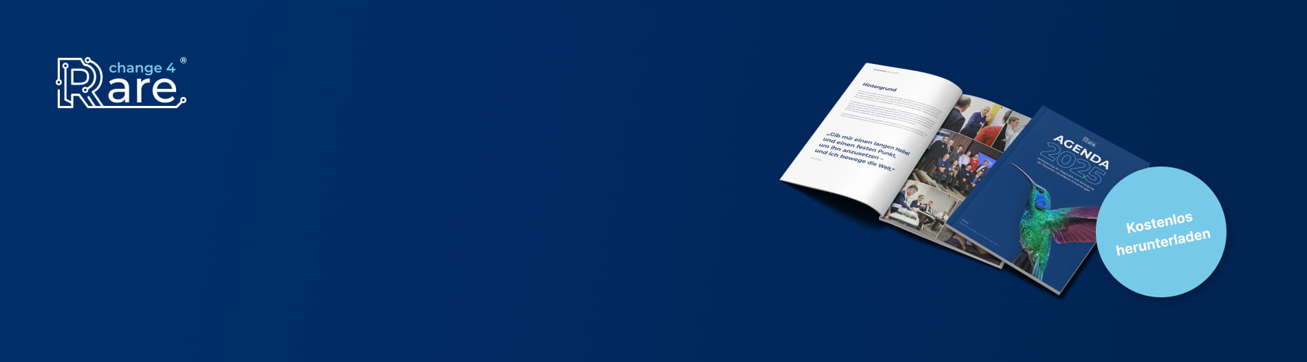 Zusammen mit 16 Expert:innen der Initiative hat change4RARE mit Blick auf die nächste Bundestagswahl die Agenda 2025 entwickelt. Mit dem Ziel, die Diagnostik und Versorgung von Menschen mit seltenen Erkrankungen zu verbessern, setzt sich change4RARE für eine Umsetzung der Agenda ein. Die entwickelten Kernbotschaften und Handlungsfelder können Sie in unserer change4RARE Agenda 2025 einsehen.